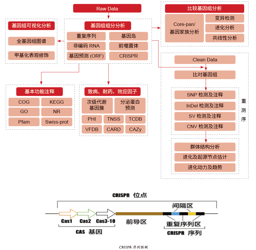 细菌基因组(De novo)完成图是对细菌基因组测序后从头组装,在组装的基础上进行基因结构注释、功能注释、分析共有序列或特征序列、单个基因或基因间相互作用、表达调控等功能。细菌基因组(De novo)测序已取代传统方法成为研究细菌进化遗传机制、关键功能基因发现的重要工具,主要应用于预测重要基因和蛋白的功能和可能的发生机制、鉴定致病相关基因、开发和研究疫苗及新型抗生素、研究细菌种内进化关系等。
