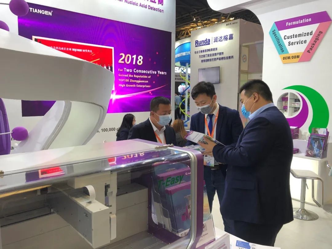 本次交易会上,TIANGEN不仅展示了高通量自动化核酸提取平台和移液工作站,还展示了检测用试剂类产品和原材料,吸引了来自国内外IVD企业参会者的驻足与交流。