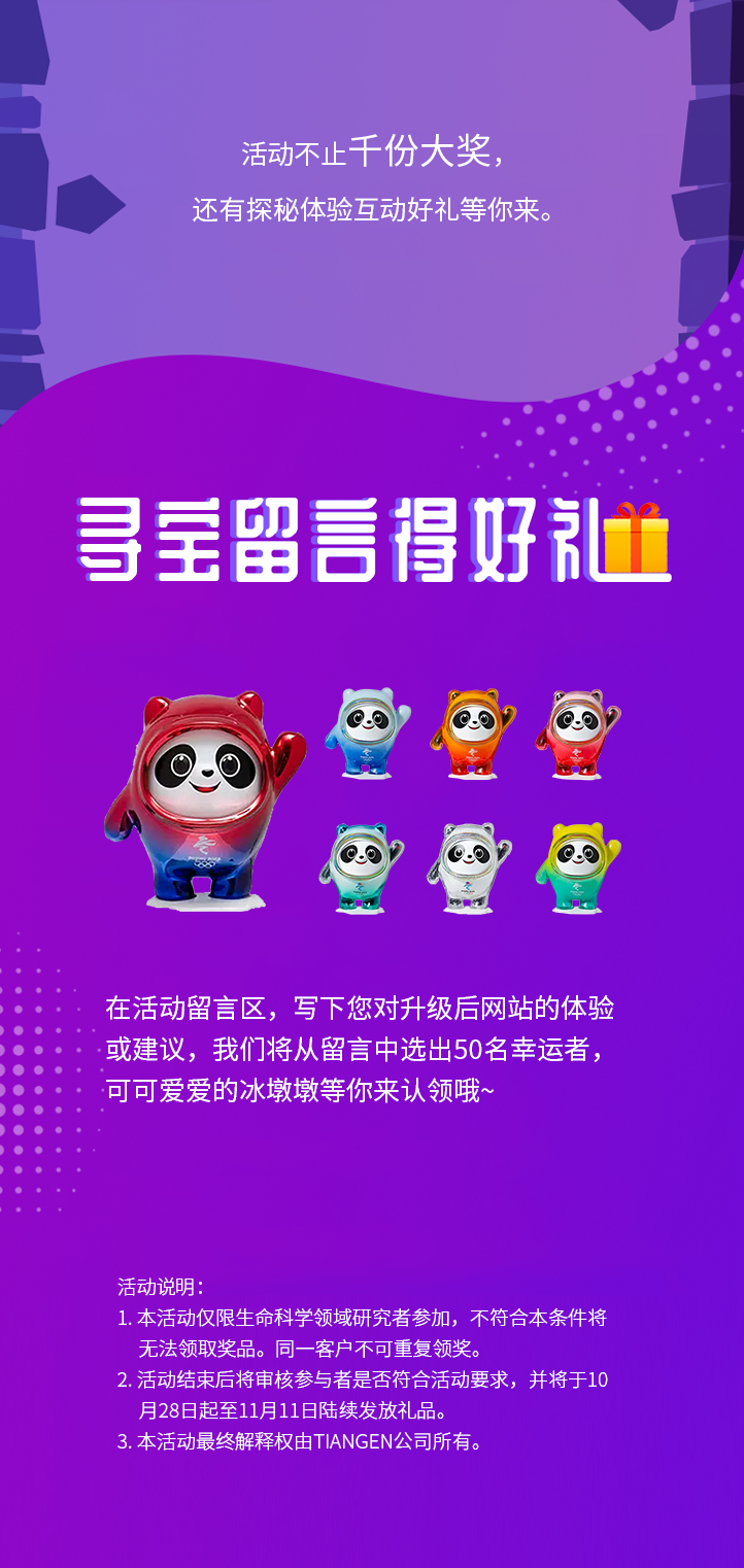 【寻宝嘉年华】TIANGEN官网新升级新体验,千份好礼等你来探寻!