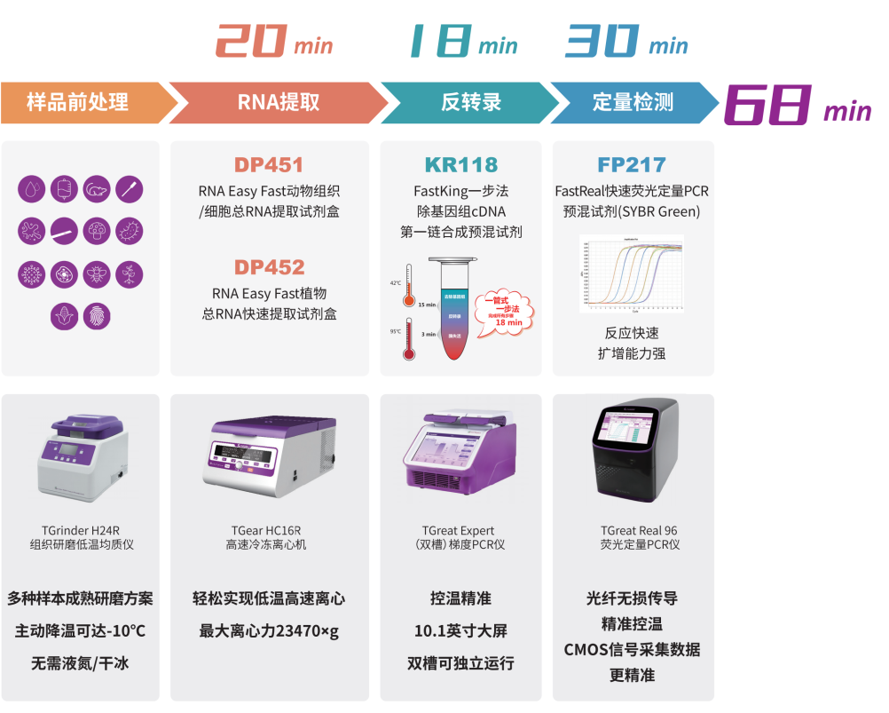 TIANGEN专注核酸提取和检测近20年,为广大科研工作者提供从样本处理、核酸纯化到下游检测的整体解决方案,帮助大家加速实验进程,避免反复摸索方案而付出的时间和材料成本。