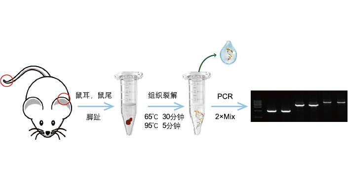 ■ 适用广泛:适用于从小鼠尾巴、耳朵以及脚趾等组织中一步法提取基因组 DNA。