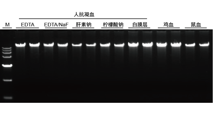 ■ 样本适用广泛:可从抗凝血(EDTA ,肝素等)、白膜层和血凝块等样品中直接提取基因组 DNA