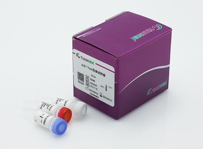 pLB-T Fast快速克隆试剂盒可以高效克隆各种PCR产物和任何具有粘性末端的DNA片段。该试剂盒对磷酸化或非磷酸化的DNA片段都有效。阳性选择载体和插入片段连接仅需5 min即可获得超过95%的阳性重组克隆。试剂盒中配备了新型的RapiLigation Mix为高效的T4 DNA连接酶反应试剂,其中含有连接增强剂、酶稳定剂,可大大缩短连接时间、提高PCR产物的连接和克隆效率。按不同需要配备了DH5α感受态细胞以及对照用超螺旋质粒,方便进行转化。