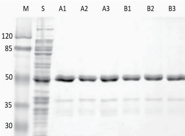 A1-3:目标蛋白(天根磁珠) B1-3:目标蛋白(其他品牌磁珠)